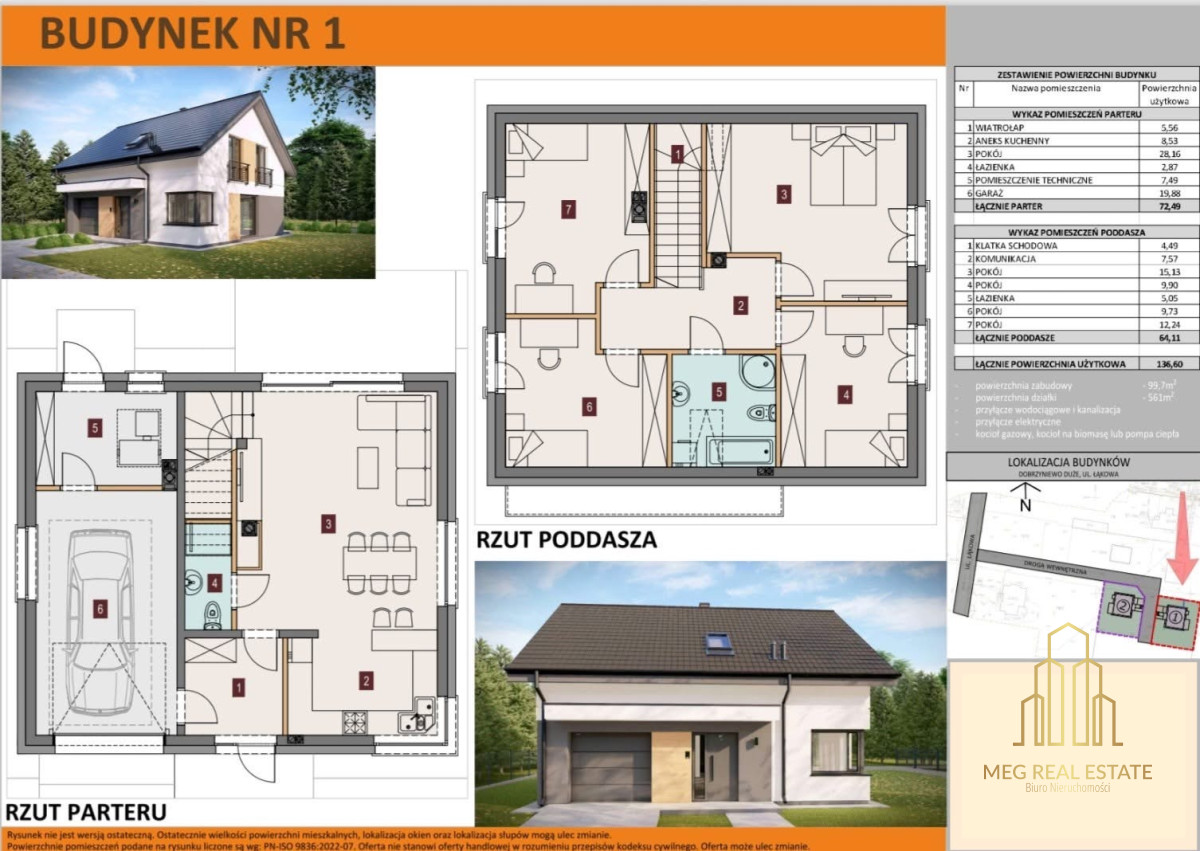 MEG Real Estate zaprasza na prezentację nowoczesnego, energooszczędnego, domu wolnostojącego w stanie surowym zamkniętym z elewacją o powierzchni 136,6 m2 posadowionego na działce od 560m2 do 570m2.