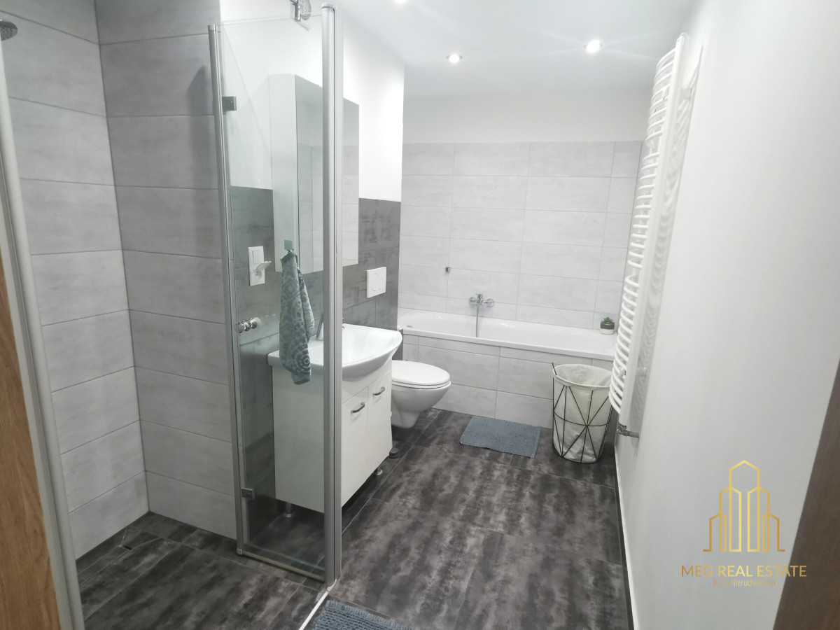 - łazienkę z wanną, z przygotowanym miejscem na prysznic,
