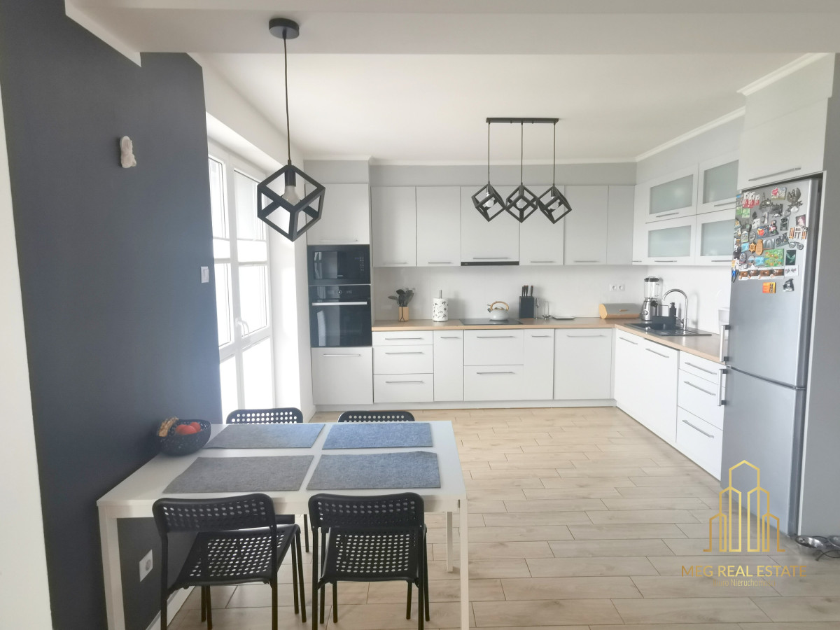 - duży salon z aneksem kuchennym i balkonem z pięknym widokiem na pola, o metrażu 42,56 m2,