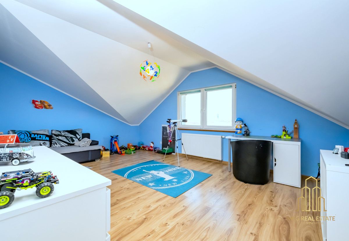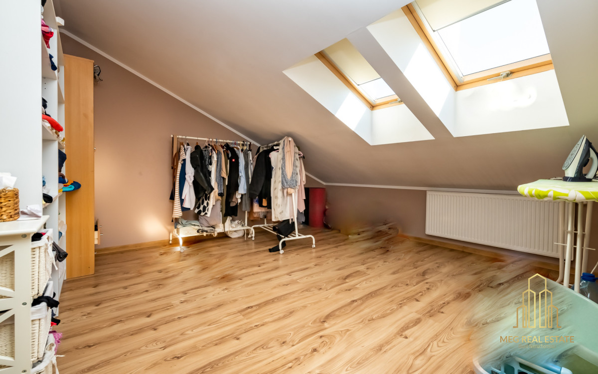 Do jednej z sypialni na poddaszu doprowadzona jest instalacja do utworzenia w niej kuchni.