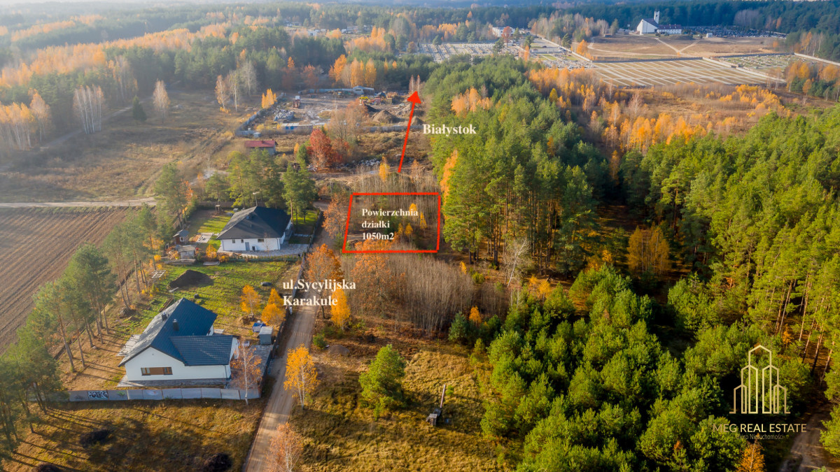 Meg Real Estate zaprasza na prezentację atrakcyjnej działki budowlanej na sprzedaż o łącznej powierzchni 1050 m², położonej w miejscowości Karakule w gminie Supraśl, przy ul. Sycylijskiej.