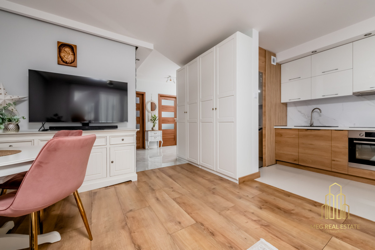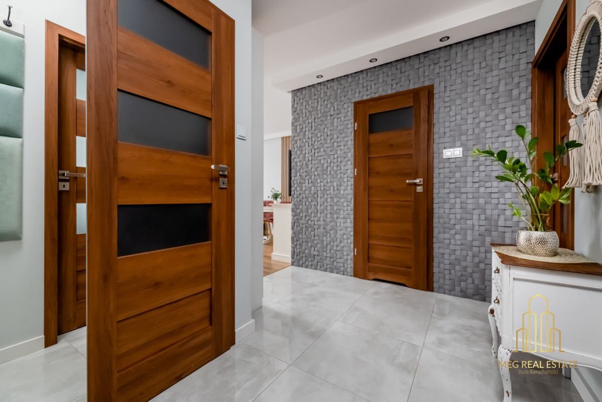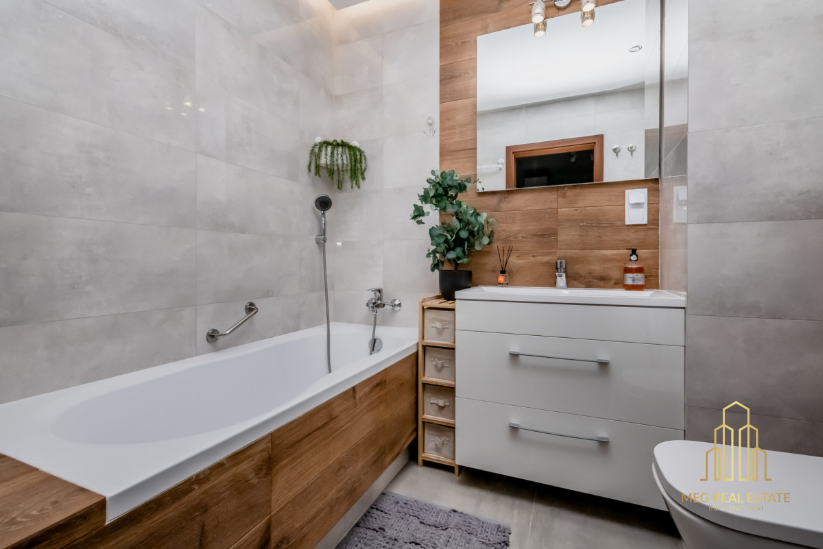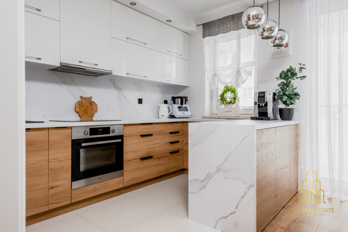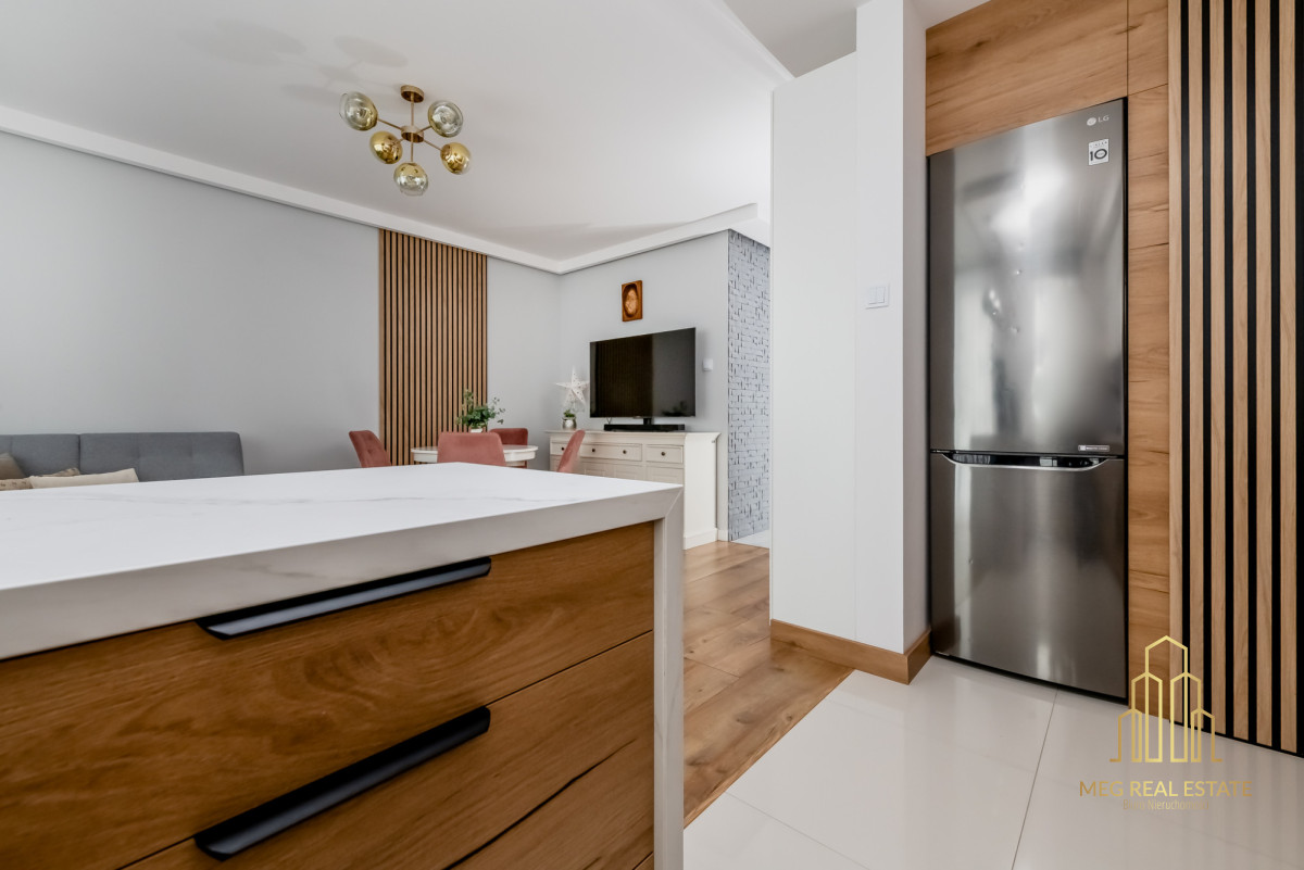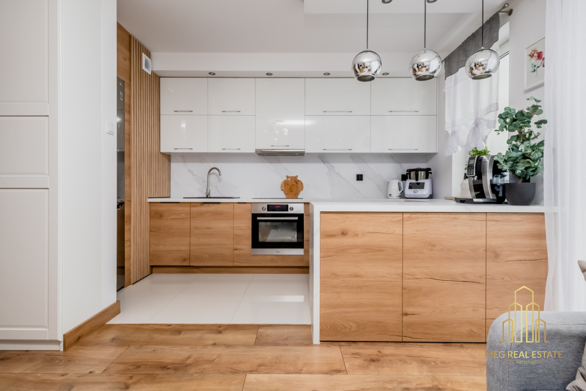 Meg Real Estate zaprasza na prezentację mieszania na sprzedaż dopracowanego w każdym detalu, położonego na 1. piętrze nowoczesnego budynku z windą z 2019 roku.