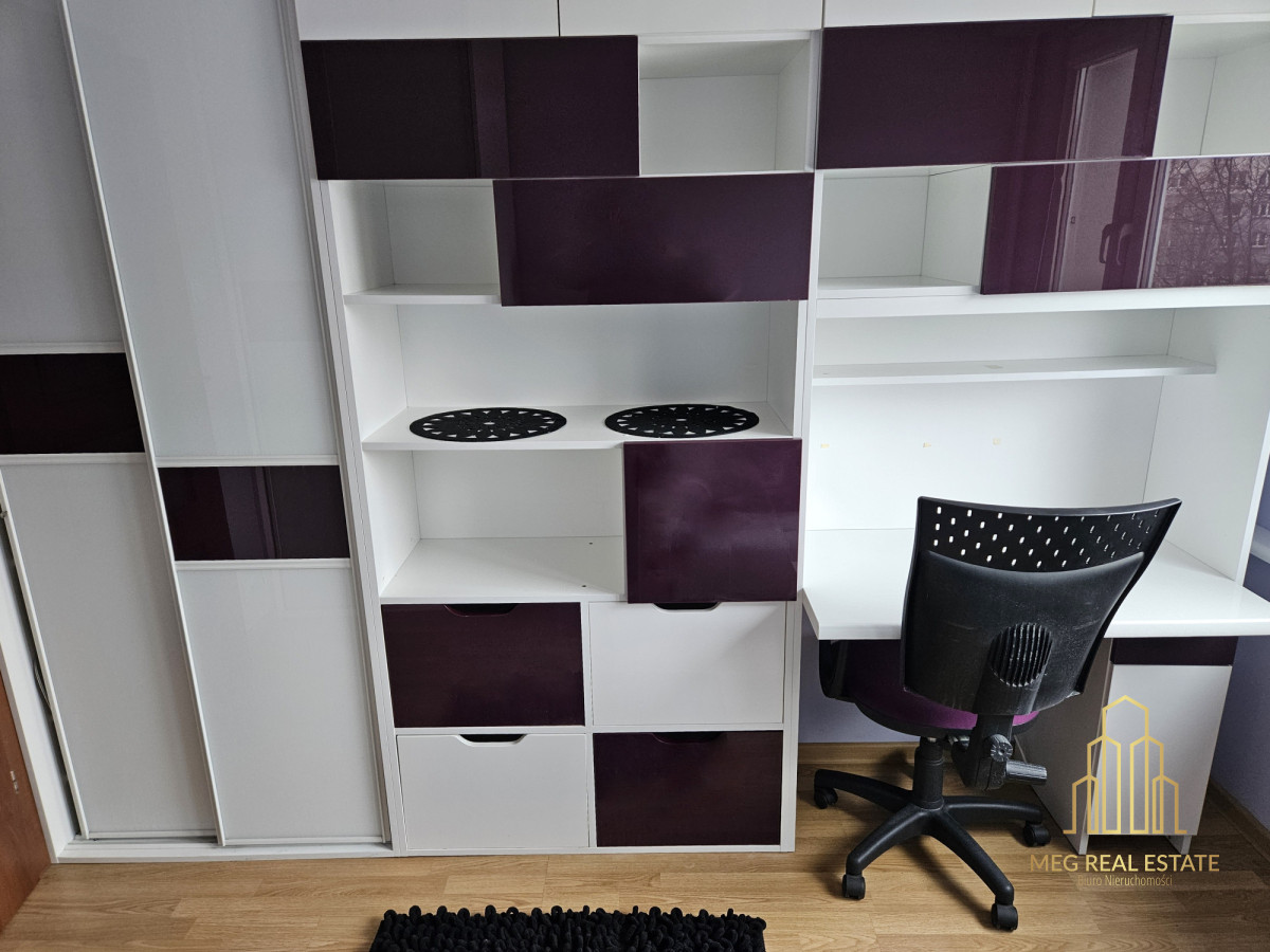 * pokój wyposażony jest w przemyślaną, pojemną zabudowę meblową z biurkiem, wykonaną na